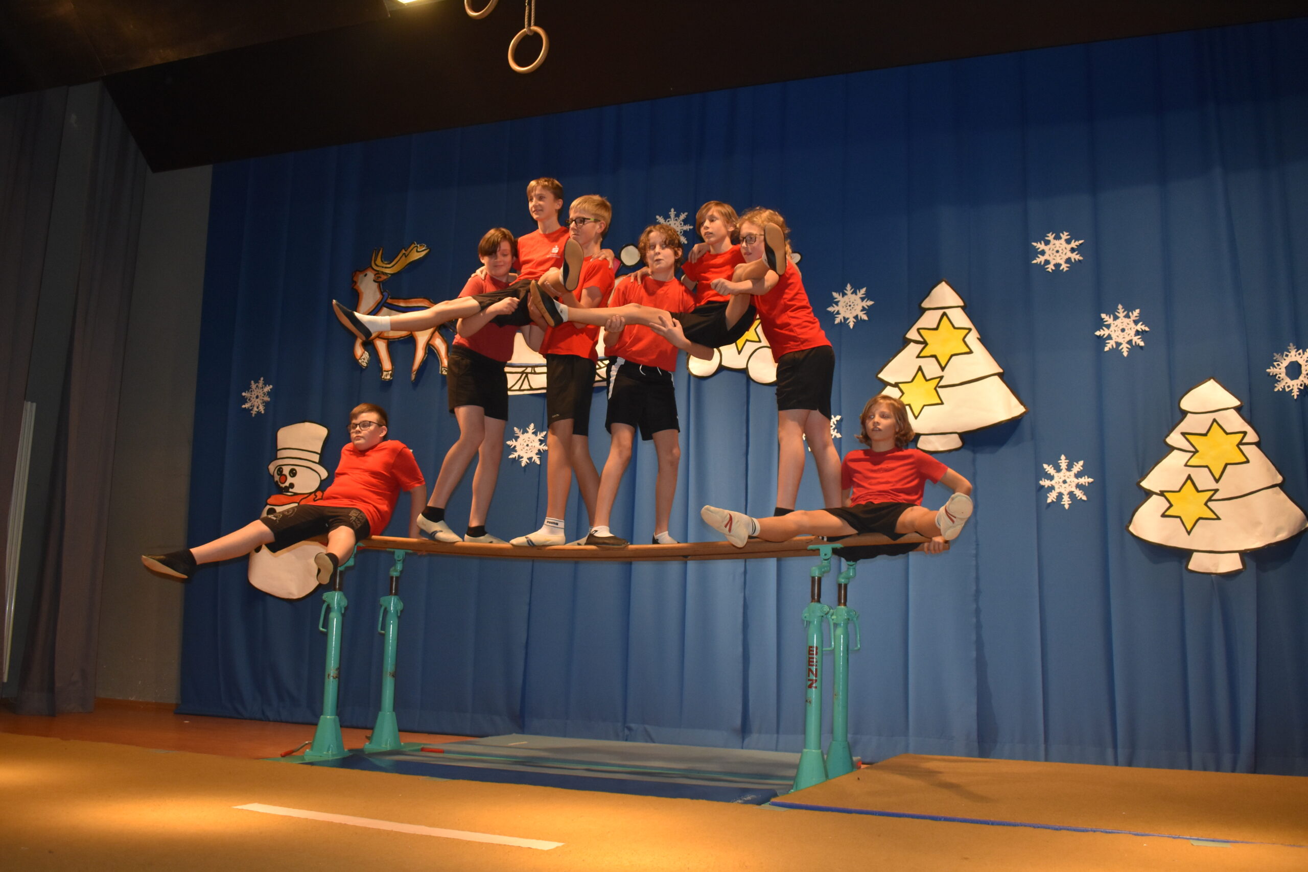 In dieser Gruppe liegt der Fokus auf Gerätturnen an Sprung, Boden, Reck und Barren, aber auch allgemeine sportliche Bewegung zur Förderung der kognitiven Fähigkeiten der Kinder.